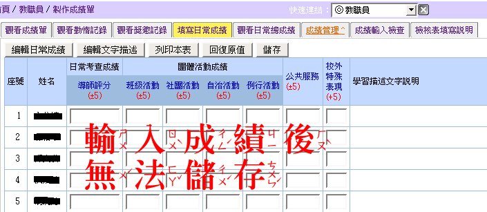 使用版本為2007.1的彰縣學籍系統安裝片,在操作日常成績輸入時
