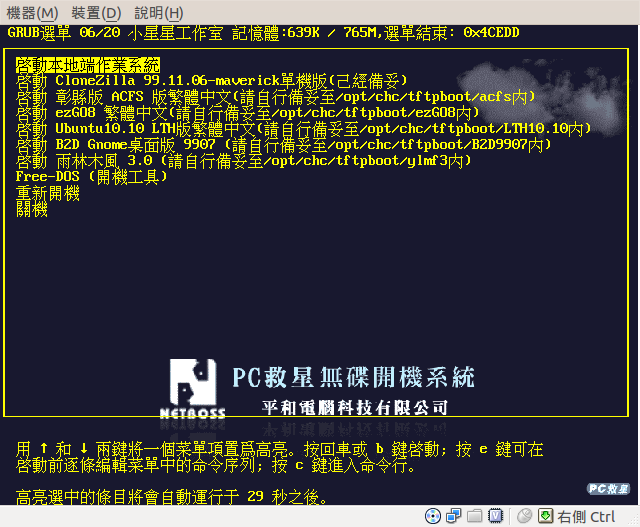 目前內建的的開機選單有...