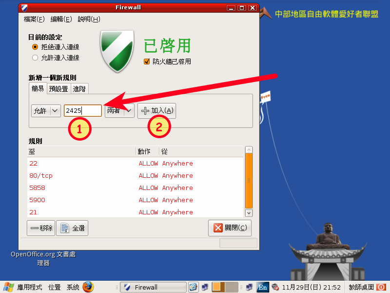 步驟1:開啟防火牆通道並加入2425的通訊埠