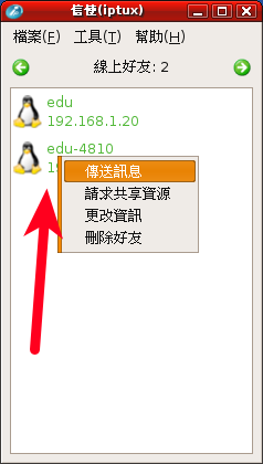 步驟4:學生對老師的圖示按右鍵傳送訊息