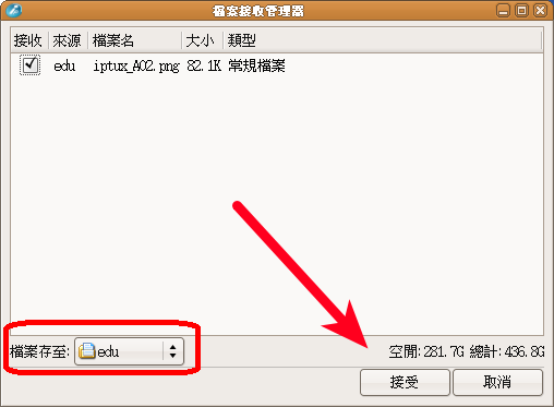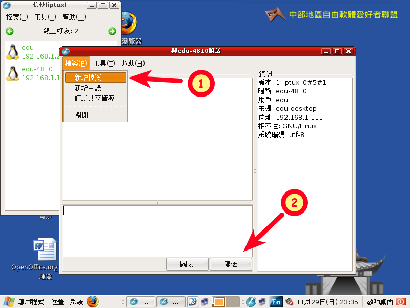 步驟5:學生利用訊息視窗傳送檔案或整個目錄