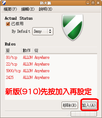 新版舊版防火牆加入的方式按鈕位置略有不同