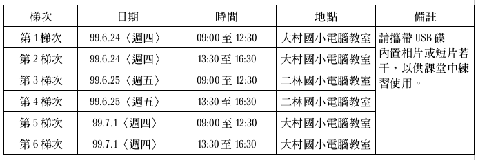 研習日期:99.06.24 (週四)、99.06.25 (週五)、99.7.1 (週四)