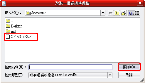 另外您的VDI檔是您所擁有的,屬性只要是644就可以了,另外放的位置不限定