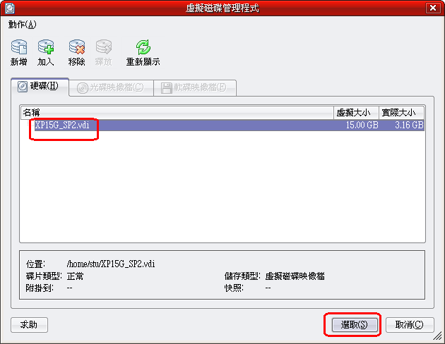 要加入之前,請先確認您的VDI檔 副檔名為小寫的.vdi