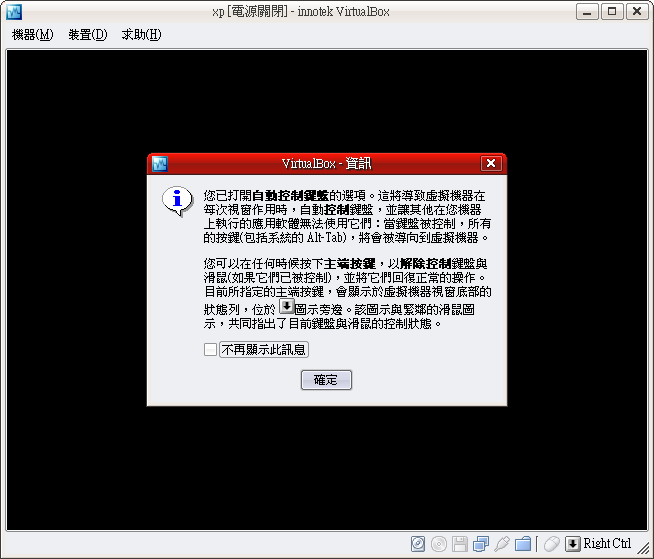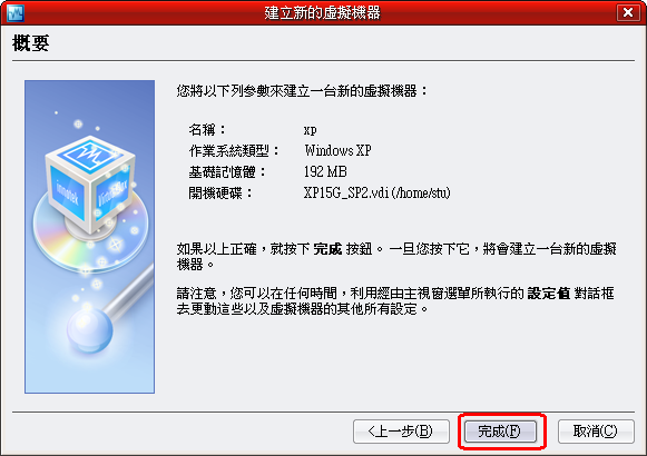(我試著將別人的vdi檔拿來用,並未改屬性,結果會一直重新開機)