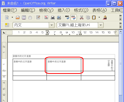 OO表格中的文字如何直排