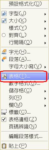 2..按下滑鼠右鍵選擇表格