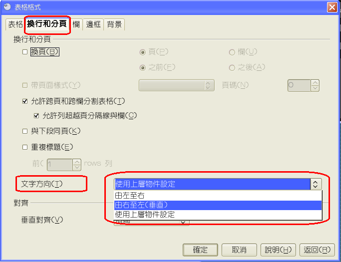 4..選擇『文字方向』為垂直