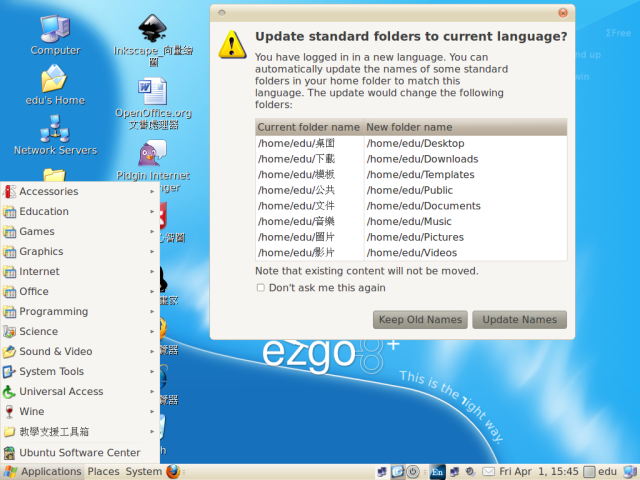 記得那時有出現讓我選英文或中文(家目錄的圖片<==>folder)